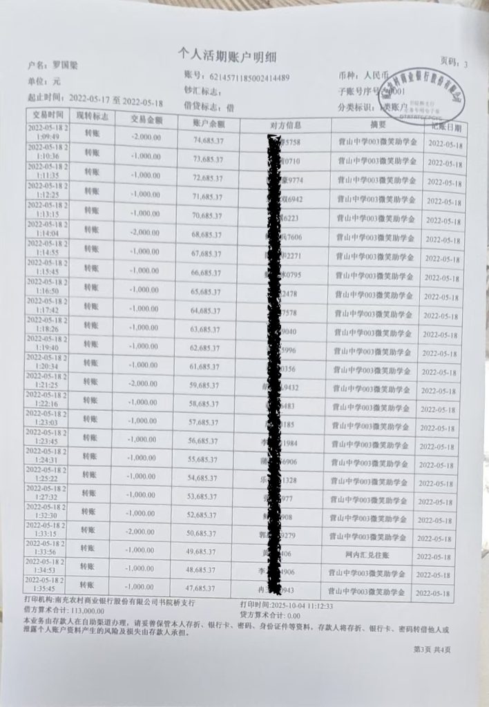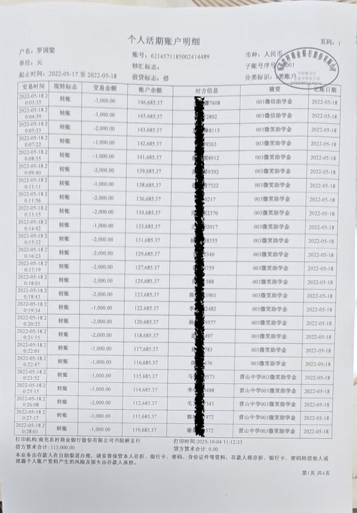 近日,营山中学高2000届3班毕业校友通过“003微笑助金”再次资助品学兼优而家境又暂时困难的学弟学妹。本次资助活动经过学生申请、班主任确认、基金会核实等程序,评选出了83名符合条件的学生,资助金额共计113000元。