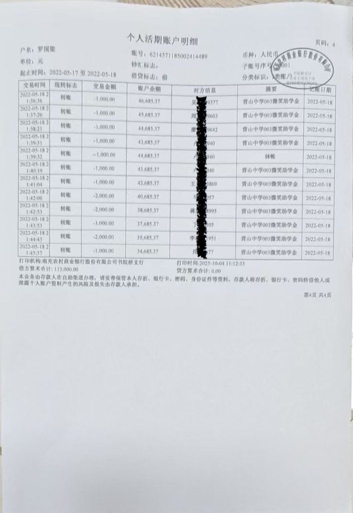 5号匿名捐赠人 | 6000 | ||